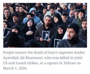 The Coordination Framework, a ruling coalition of Shiite groups with varying degrees of links to Iran, said “with deep sorrow and profound grief, we mourn the passing of the martyred leader, Ayatollah Ali Khamenei”.