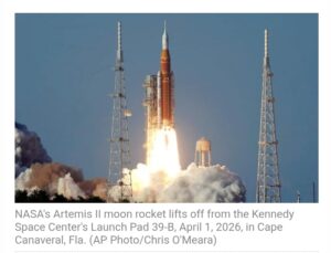 Four astronauts embarked on a high-stakes flight around the moon Wednesday, April 1, 2026, humanity’s first lunar voyage in more than half a century and the thrilling leadoff in NASA’s push toward a landing in two years.